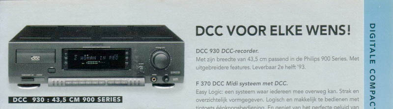 I am looking for any information about the Philips DCC930. The digital compact cassette recorder was shows in the Philips magazine 1993/1 page 89, but as far as i know it was never sold on the market. If you have any information about this DCC recorder, please contact us.